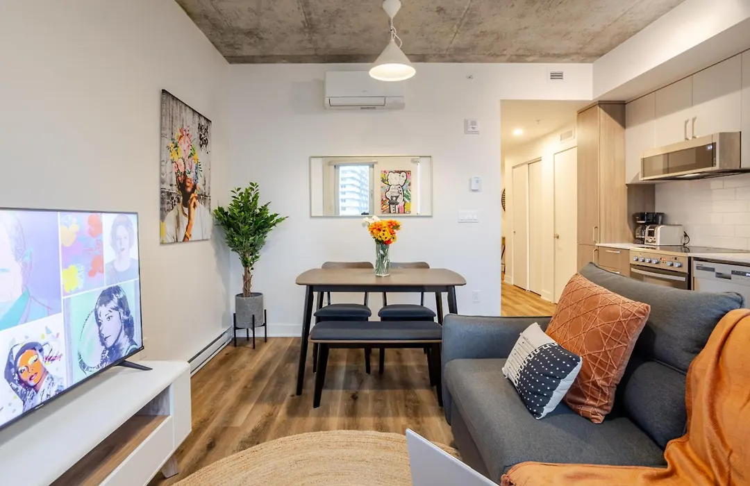 Stylish 1Bdr Apartment In The Heart Of Dt Mtl Zw2 has a seating area and a fully equipped kitchen, and comforts such as air conditioning. All bathrooms contain a bathtub and a shower. Hair dryers and bath sheets can also be found.